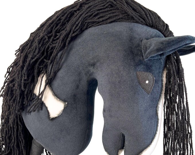 Black Hobby Horse with White Blaze, Realistic Handmade Stick Horse Toy, Equestrian Gift for Kids & Teens, Ride on Fun, Black stick horse