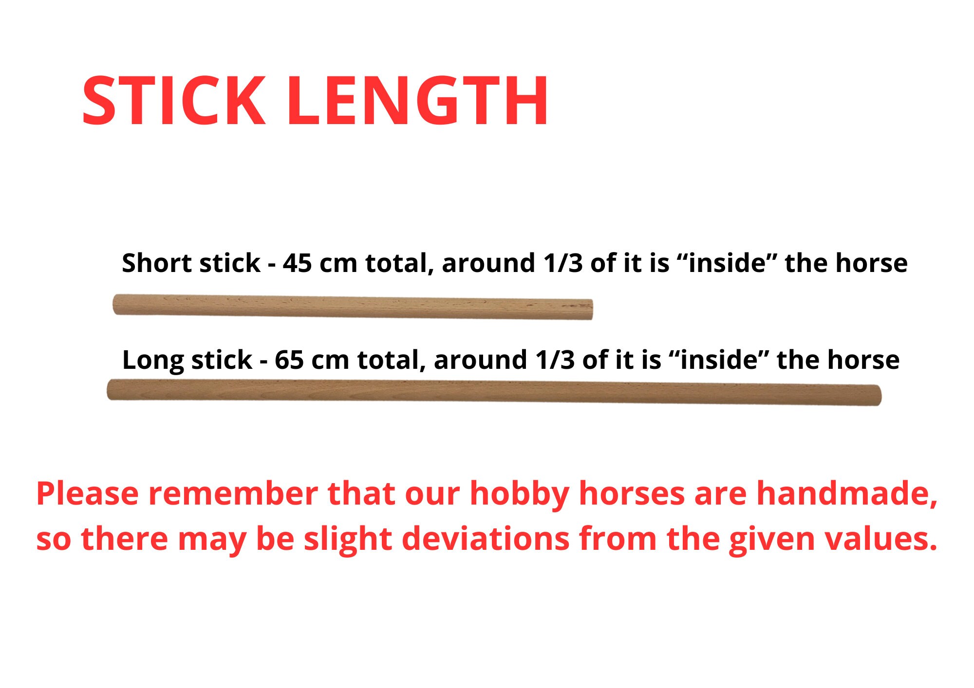 💗Always comes with a wooden stick: short or long. Short is 45 cm, but around 1/3 of it is "inside the reindeer". Long stick has around 25 cm "inside" the reindeer.