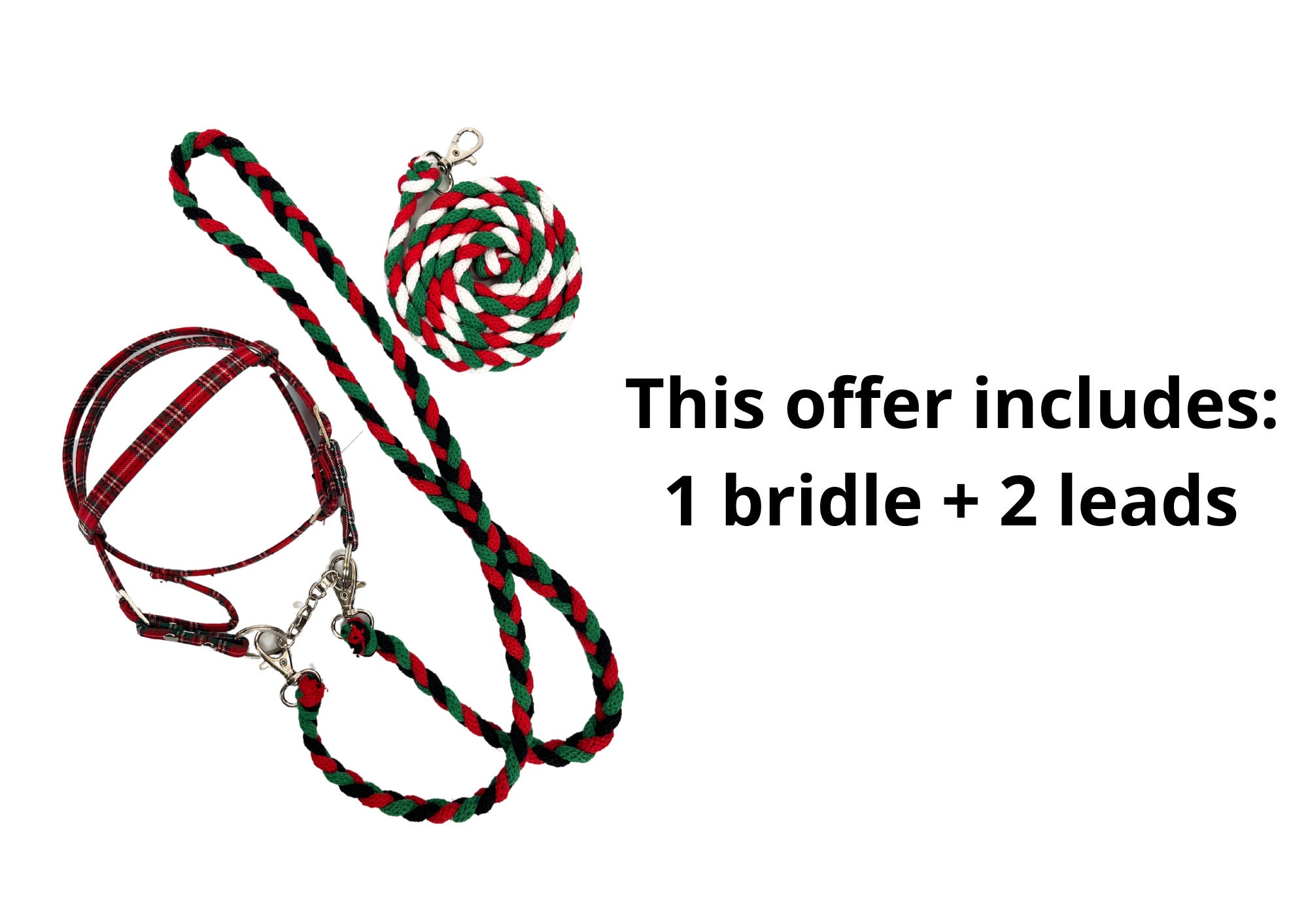 We include two reins made of cord, color-coordinated to capture the holiday spirit. Choose the right color option to match your horse's attire for the day!